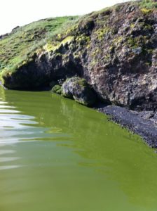 Leirlosið í ágúst hefur verið óvenju mikið. The Cyanobacteria bloom has been heavy this August.